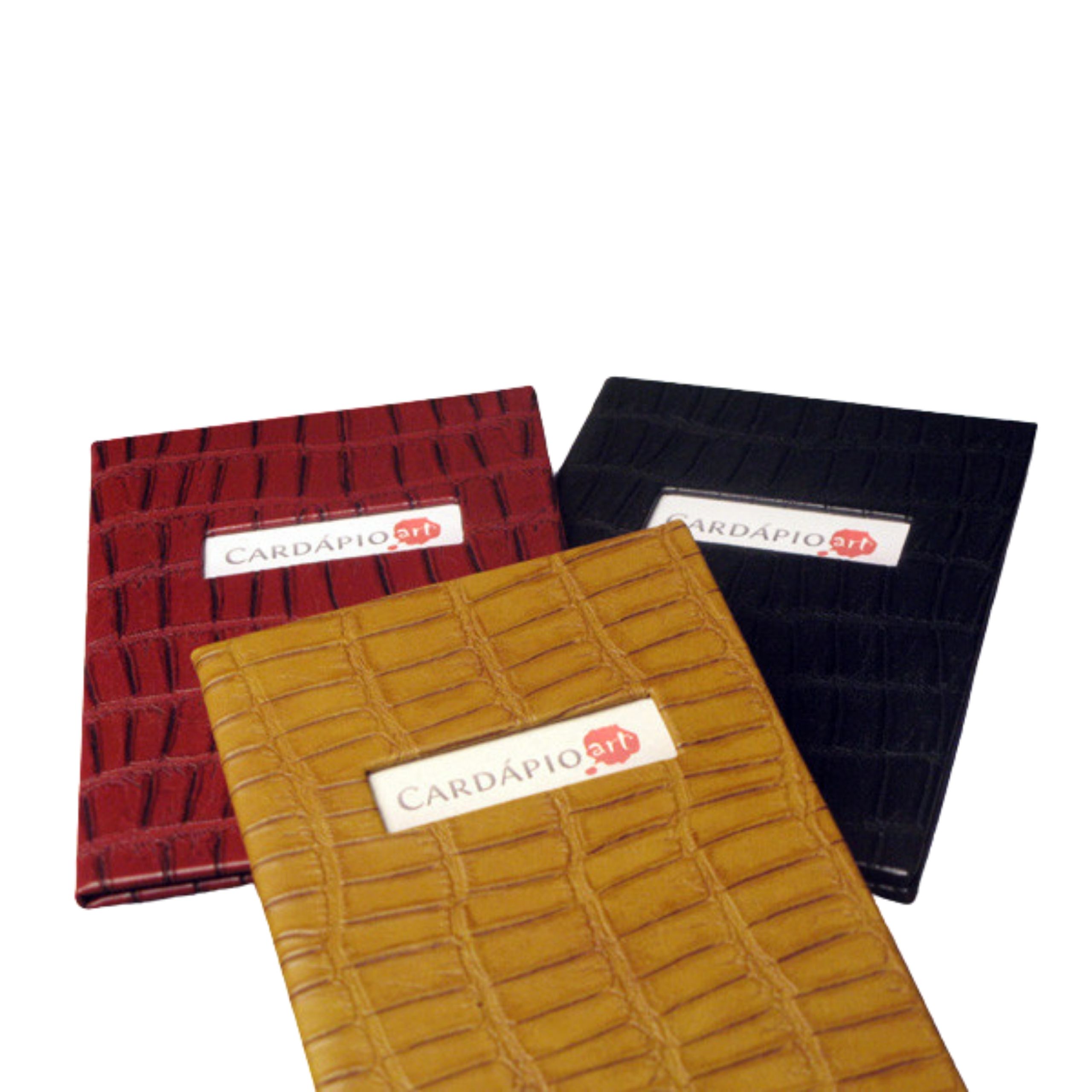 Você pode contar com modelos de primeira linha, com as mesmas aplicações dos cardápios (couro natural, couro sintético, percalux, etc).