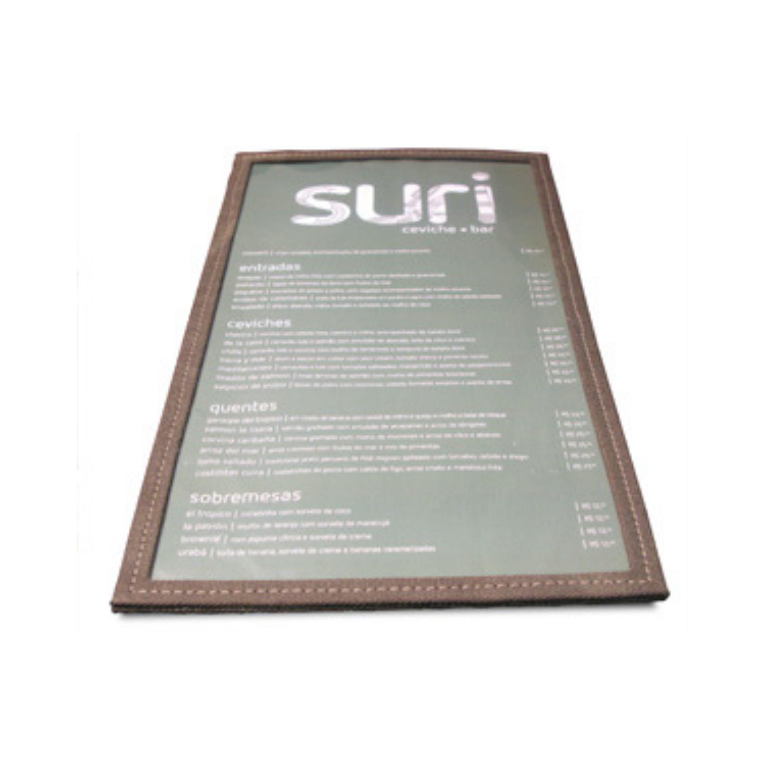 São vários modelos de cardápio para bar à disposição, como em couro natural, couro sintético, percaulx, papel reciclado e em lona. Em cada opção é possível aplicar diferentes tipos de impressão de sua logomarca, fazendo assim com que a arte do projeto se torne uma ferramenta ainda mais valorosa para o seu estabelecimento.